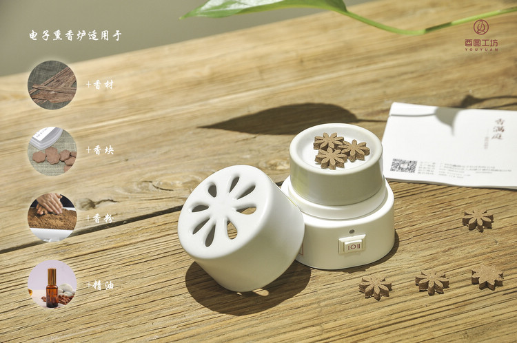 香滿庭,家用插墻電子熏香器,其名稱改自詞牌名“滿庭芳”,寓意為滿庭芳香,香溢滿庭。電源開關使用高低二檔調溫,使用簡單,可靠性高。產品根據高溫干餾法原理,可用于熏香粉、香料、香片、香丸、香藥等非液態材料,適用于家居、辦公、酒店等室內場所。